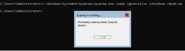 C:\Windows\System32\Sysprep\sysprep.exe /oobe /Generalize /Shutdown /Mode:vm
