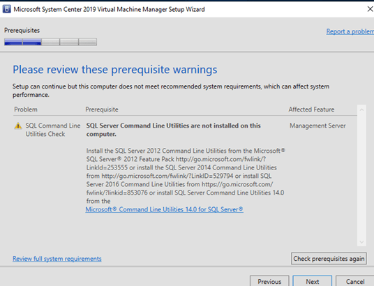 After installing all the pre-requisite, I am finally able to get passed all the warnings and continue to the installation. Put in your SQL server name here. If you don’t have one yet, you will have to build one first. Note that the SQL Express version does not work here. I upgraded my SQL server to 2019 Developer edition.