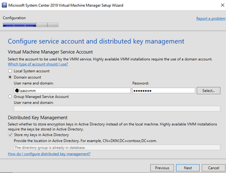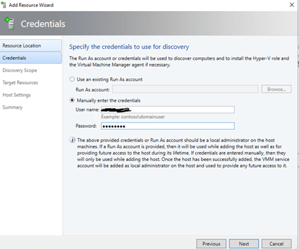 Put in the credentials of an account for machine discovery. It cannot be the same Service Account that we define earlier.