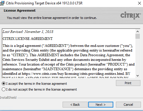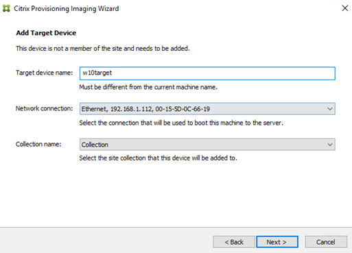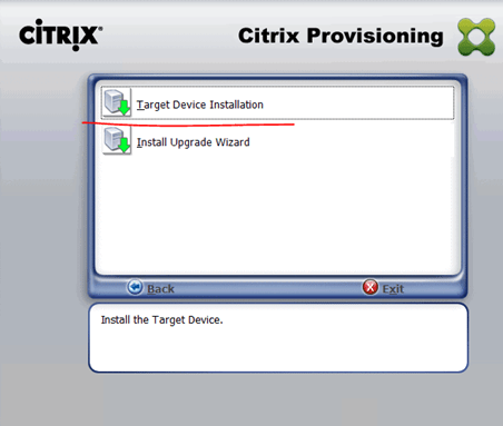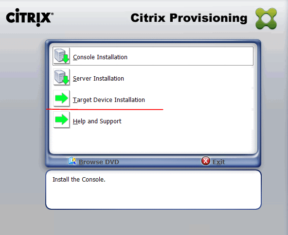 Mount the Citirx Provisioning Server ISO file on the new Win10 VM after you installed applications you need and Join it to the domain. Launch the Autorun.exe and select “Target Device Installation” this time.