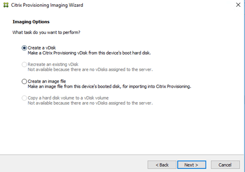 We will select the middle option here since we will be using the Citrix Provisioning Services.