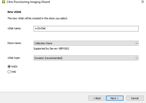 Name the vDisk and we can leave the rest as default.