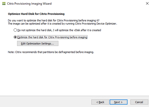 Sekect optimize the hard disk so that the new VMs that are using this template will have better performance.
