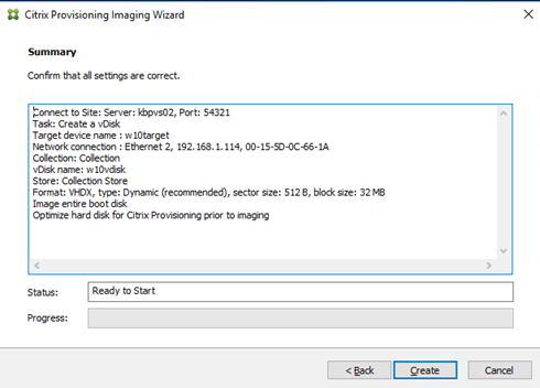 Select Create a vDisk and put in a Target Device Name.