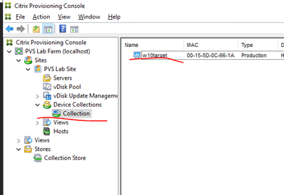 If you go back to PVS01, you will see a new vDisk “w10vdisk” in the vDisk Pool”. It is in Private mode, meaning it is dedicated to one specific machine.