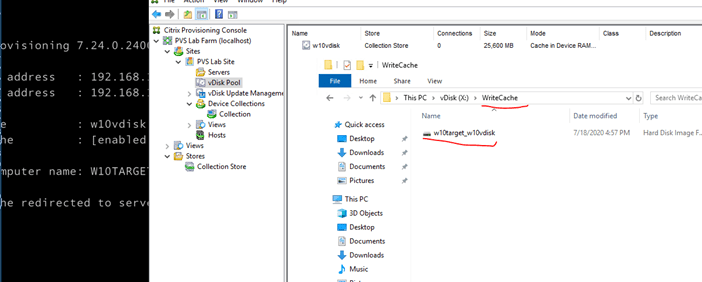 It is now booting from the vDisk alone. If you change the settings of the vDisk to standard image mode, you should see some cache files in PVS01 when you are booting the VM up (in the folder that you tell the server to use during the configuration). We do not want to overload the PVS01 server, therefore, we will create a boot disk and attach it to w10target. The first time you boot into the VM, it will still use that PVS drive for caching. You have to add and format the disk in disk manager before it can be used for writing cache.
