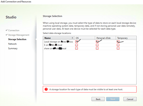 Browse to your hypervisor, it does not need to be a cluster as it suggests. Select the storage that you are going to use here. PVS will fail to create the VM if the there is any issue with locating or accessing the storage.