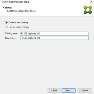 One good thing about using Citrix Virtual Desktops setup wizard is that it allows you to create new machine Catalog from the wizard so you don’t have to do it manually. Name you catalog and click next.