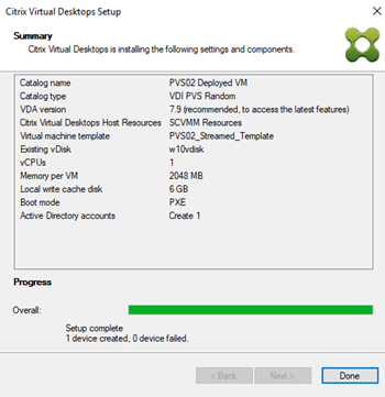 You can create as many VM as you like, assigning resources and the Local write Cache disk directly from this wizard. You also see the “Local Write Cache Disk that it is going to create along with the VMs. You can change the size of this disk here if you wish.