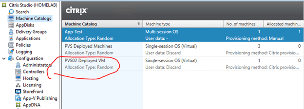 Go to your Citrix Studio and you will find the newly created Machine Catalog there. What is left to do now is to create a Delivery Group to publish these VM to our users!