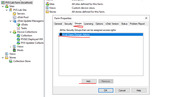 To assign the role, we must first add the security groups to our farm. Go to Citrix Provisioning Console and right click on our Farm to go to properties.