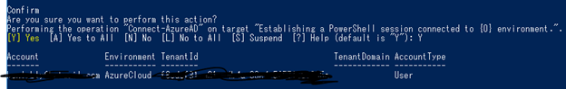 Before we can run the above command, we need to connect to our AzureAD first. Now if you type in: