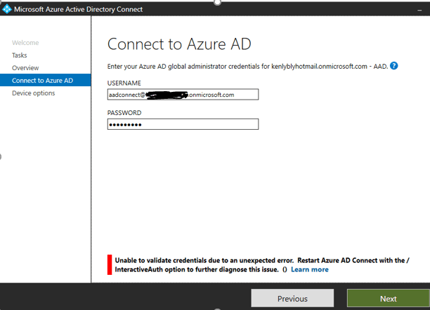 Connect to Azure AD using the account with the global Administrator role.