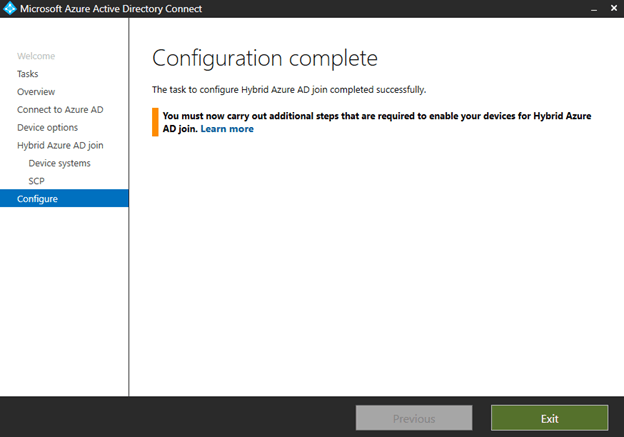 To have existing devices in your On Premise domain to join Azure AD in this hybrid setup, go back to your Azure AD connect server and run the Azure AD connect console.