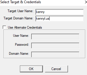 After installation, open the tool and click on File -> select target to enter the user account name. For example, if the domain is Kennyl.us and the user account is Kenny, enter that information in the field.